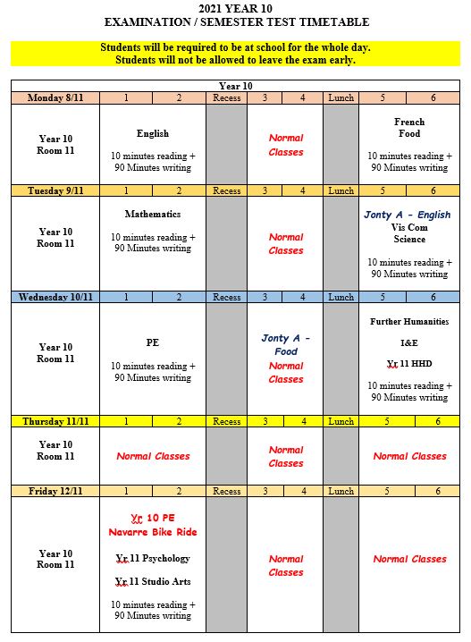 Year 10 students will begin their exams on Monday 8th November. The Year 10 exams allow students to practice what a subject-based formal assessment is like in preparation for their VCE studies and other formal assessments.