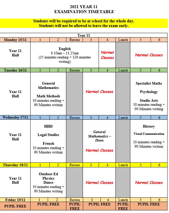 Students will continue to have exams for each of their subjects over the next two weeks, with the last exam finishing on Wednesday, 17th November. Exams will be undertaken in the school’s ILC during this period, meaning other classes will be moved. Students also need to keep away from the ILC throughout the day during this exam period. We wish our Year 12 students all the best with their final assessments.