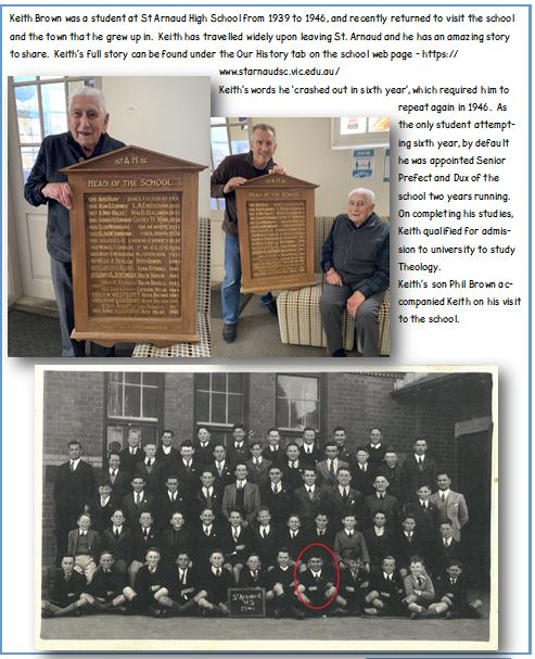 Keith Brown was a student at St Arnaud High School from 1939 to 1946, and recently returned to visit the school and the town that he grew up in. Keith has travelled widely upon leaving St. Arnaud and he has an amazing story to share.